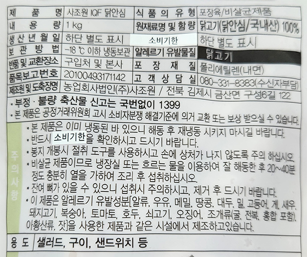[사조원] 국내산 닭안심(IQF) 1kg